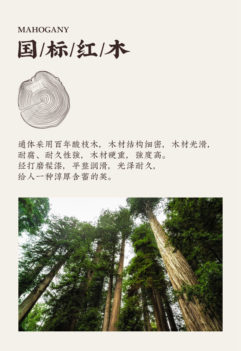 黃金萬兩,不及紅木一方,通體采用百年酸枝木,平整潤滑、光澤耐久,給人一種淳厚含蓄的美。