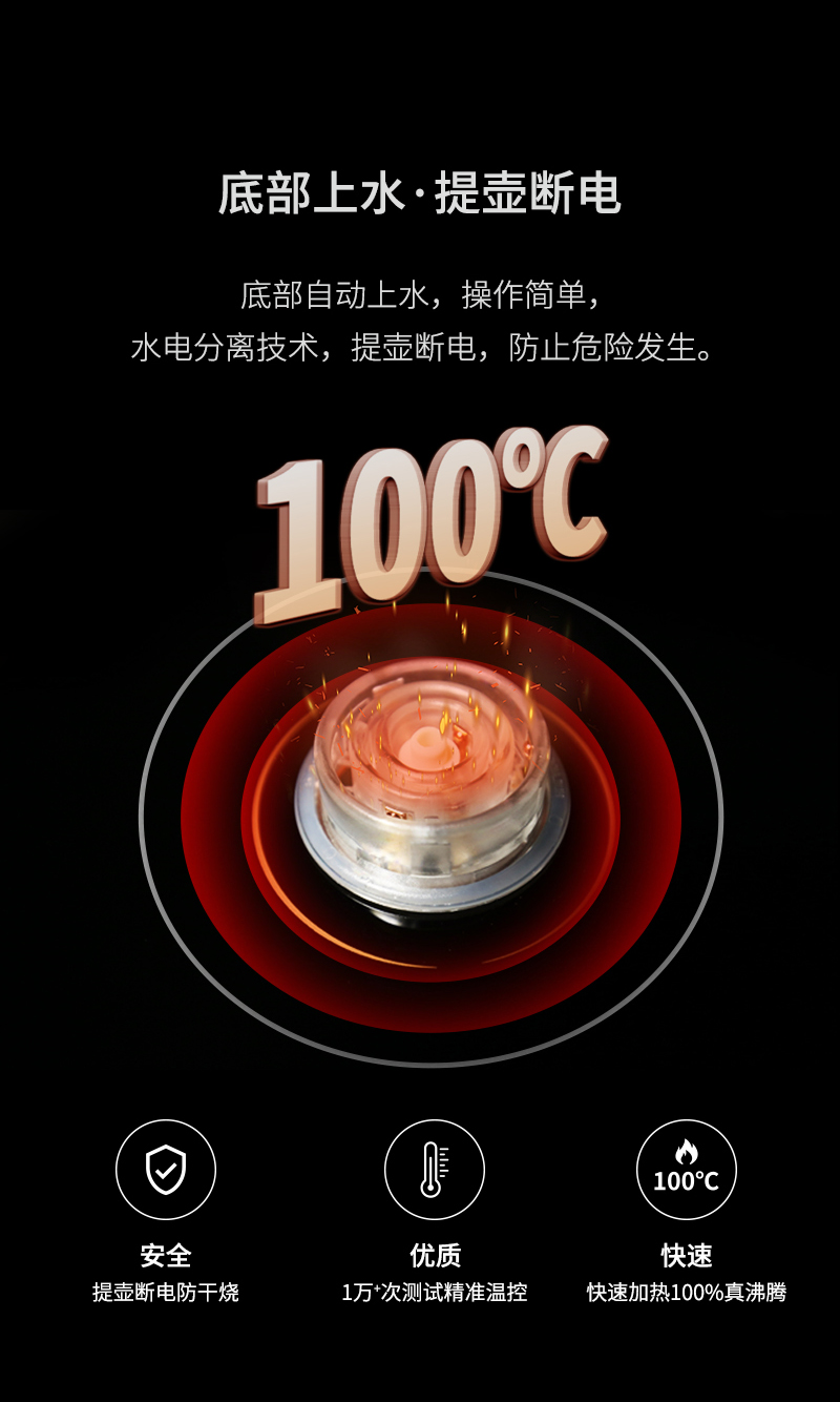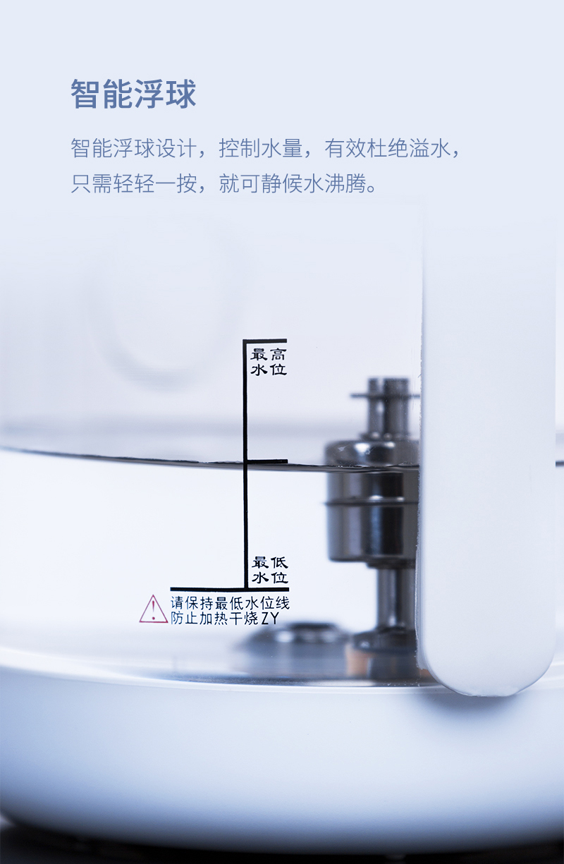 一個鋁合金操作旋鈕,操作一目了然。告別傳統(tǒng)水柱加水,全新升級涌泉式底部上水。智能浮球控制水量,有效杜絕溢水情況。