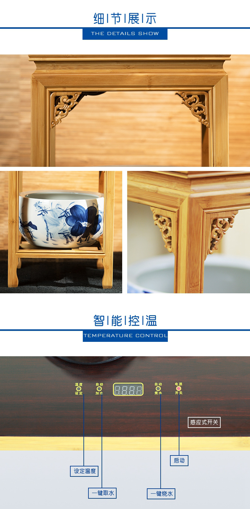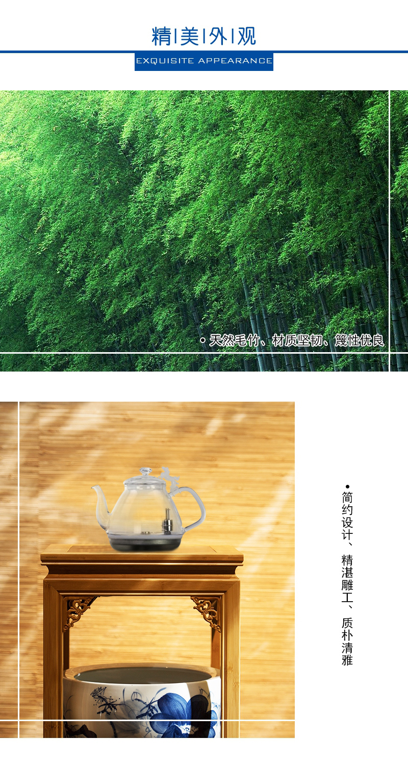 天然毛竹材質(zhì),堅韌、簡約、質(zhì)樸;高硼硅玻璃壺,通透明亮、線條優(yōu)美流暢;手繪陶瓷缸,古典優(yōu)雅、光澤耐久。