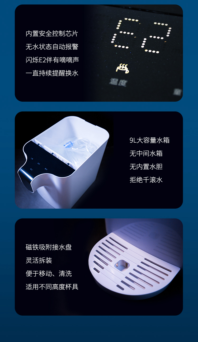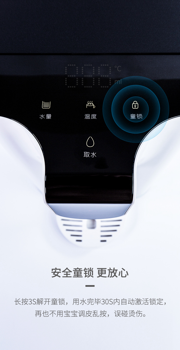 3秒快速加熱出水,轉(zhuǎn)瞬間擁有一杯溫度適宜的新鮮山泉水。8檔水溫可選,4檔水量調(diào)控,安全童鎖更放心,喝出健康鮮活水。